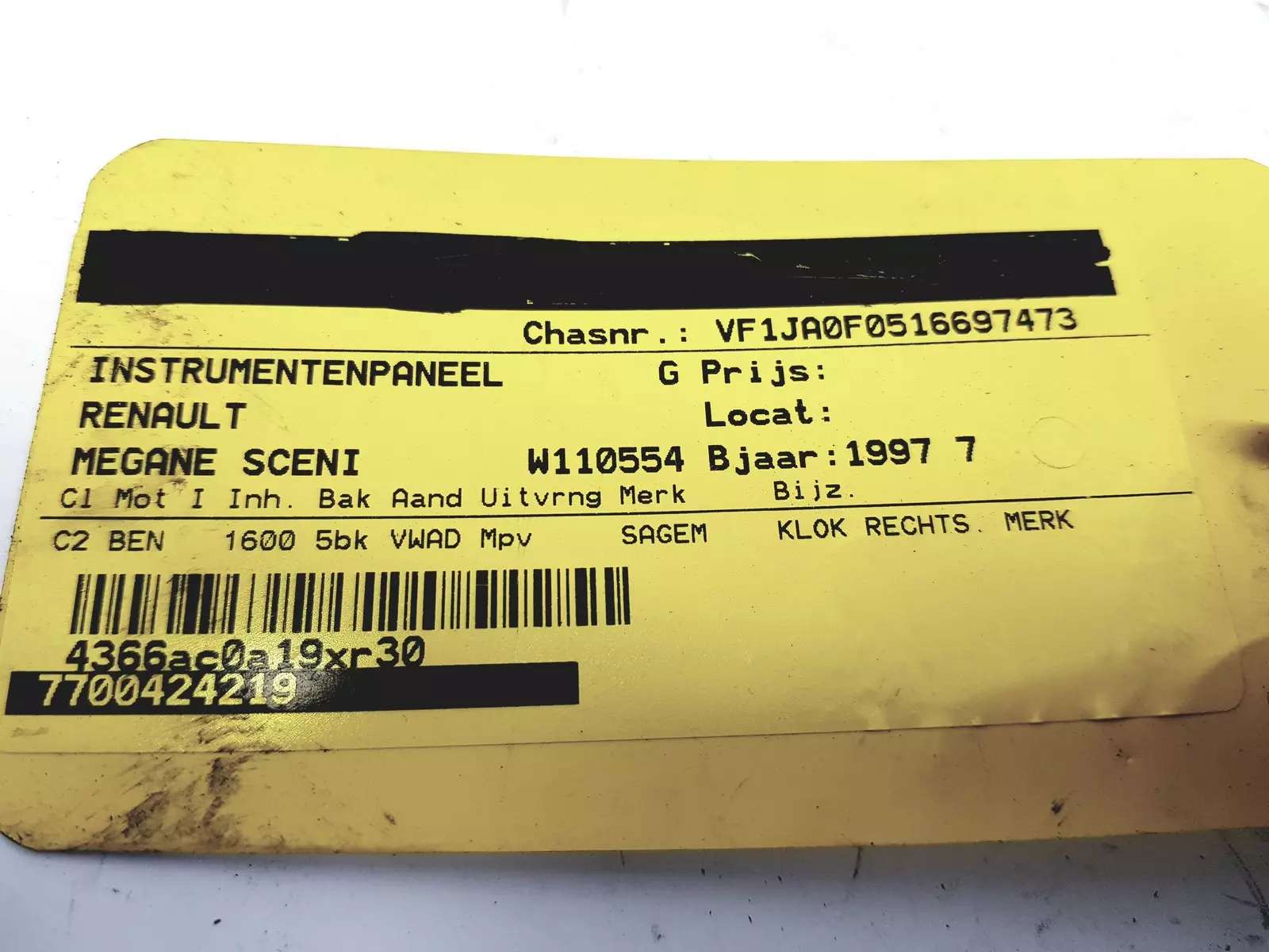 Le numéro de catalogue du fabriquant du véhicule 7700424219 F
